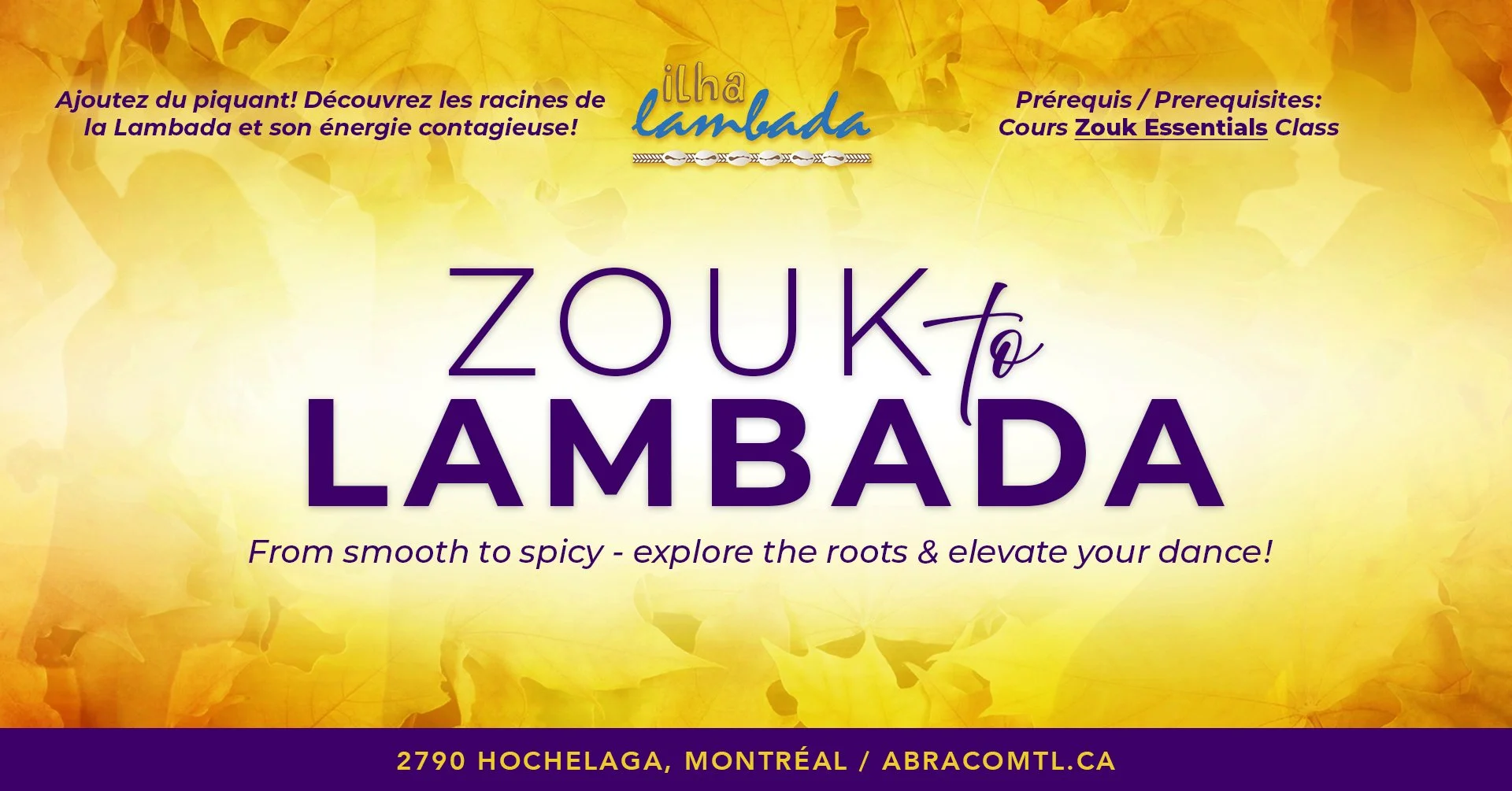 Ajoutez du piquant! Découvrez les racines de la Lambada et son énergie contagieuse! Le cours est conçu pour les danseurs ayant déjà une base de Zouk Brésilien