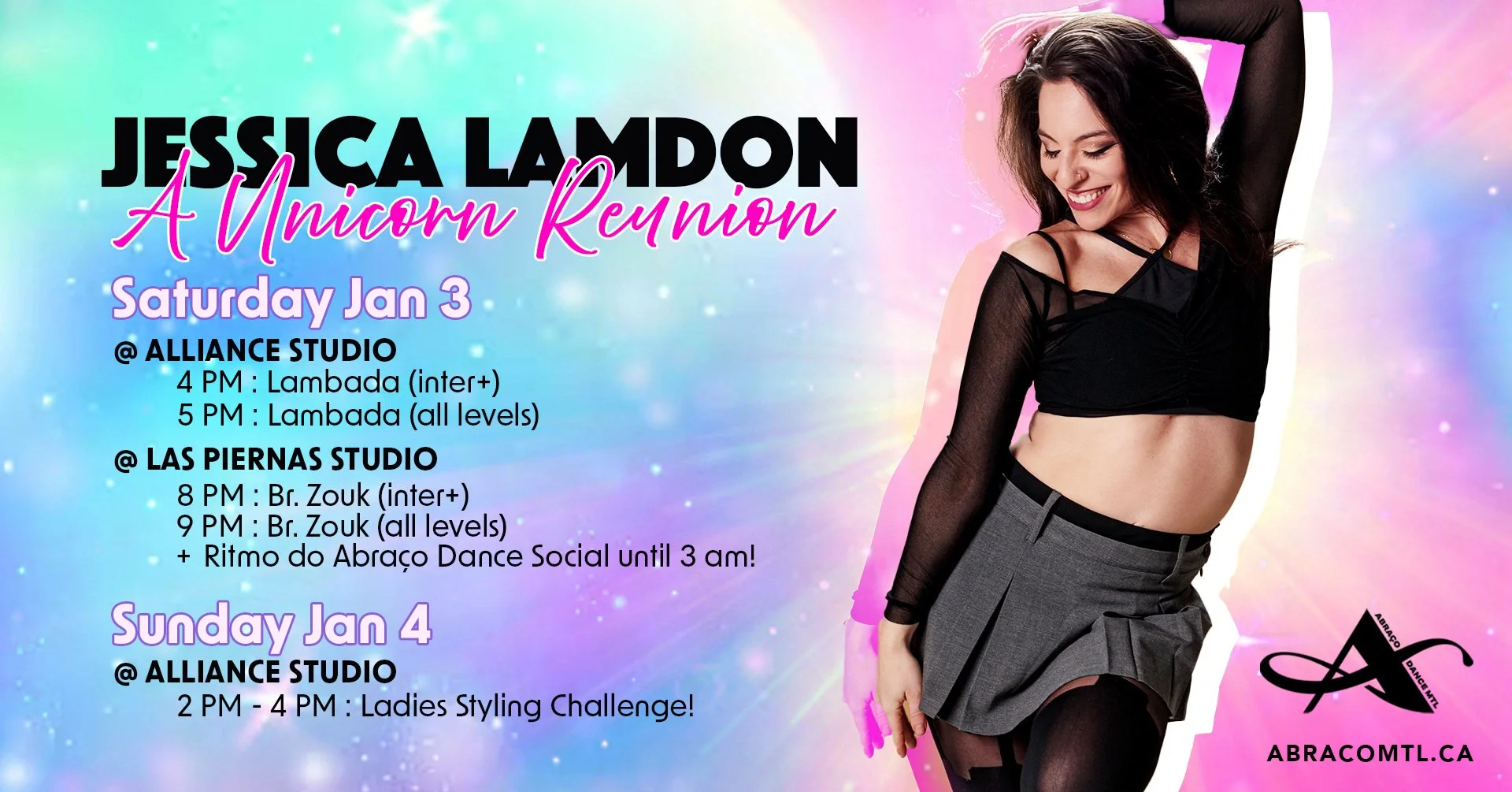 Venez découvrir l’incroyable Jessica “The Unicorn” Lamdon de New York, États-Unis! Une sensationnelle professeure de Zouk Brésilien & Lambada!